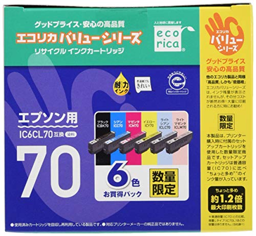 エコリカ エプソン IC6CL70 対応リサイクルインクカートリッジ 6色パック ECI-E70V-6P 目印:さくらんぼ
