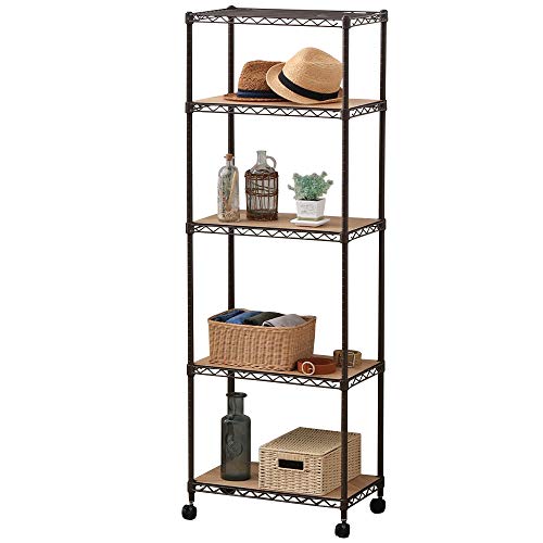 アイリスオーヤマ カラーメタルラック本体 ウッドボード付き ブラウン 茶 幅55×奥行35×高さ163cm ラック 棚 ス