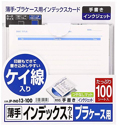 サンワサプライ DVD/CDプラケース用インデックスカード・薄手(罫線入) 120×120mm 100シート入り JP-IND13-100