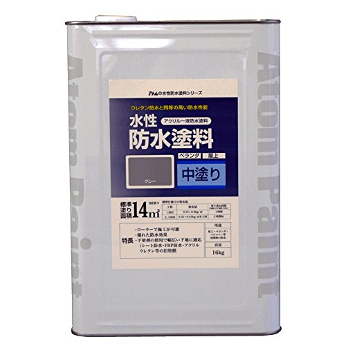 アトムハウスペイント 水性防水塗料 中塗りグレー 16Kg
