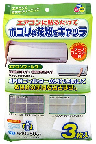 ワイズ エアコンフィルター 3枚入 EC-002 ホワイト 約40x80cm