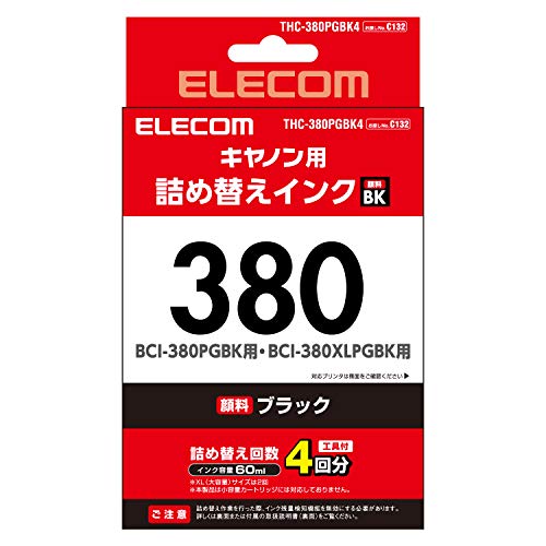 エレコム 詰め替え インク Canon キャノン BCI-380対応 ブラック(4回分) THC-380PGBK4 THC-380PGBK4 ブラック(顔料)