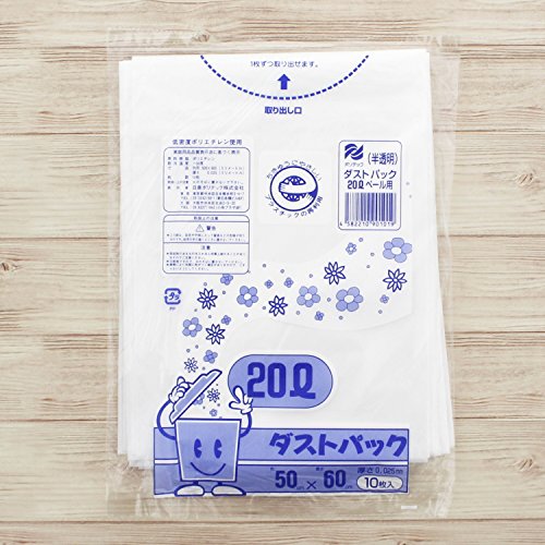 日泉ポリテック ゴミ袋 ゴミ箱用アクセサリ 半透明 20L ダストパック 厚手0.025mm 日本製 10枚入 5個セット