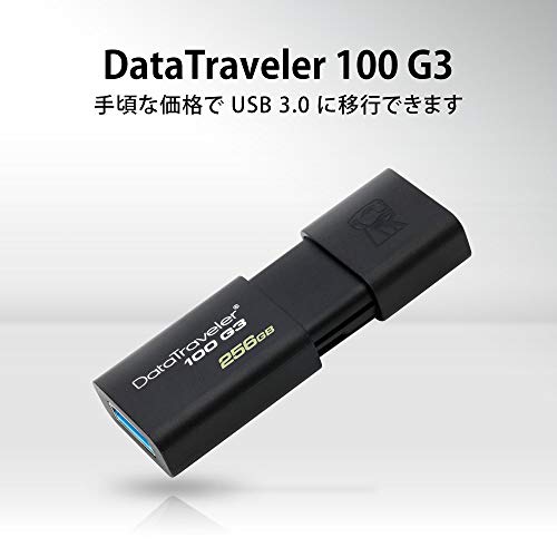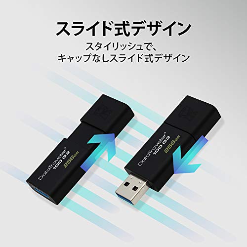 キングストン USBメモリ 256GB USB 3.1 & USB 3.0 スライド式 ストラップホール付き DT100G3/256GB