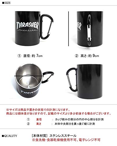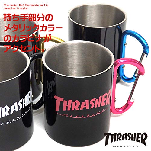 THRASHER マグカップ スラッシャー カラビナ付きマグカップ ステンレススチール (ブラック/ピンク, フリーサイ