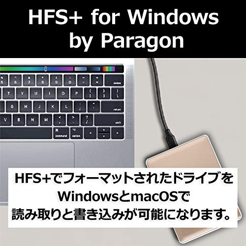 [特徴]:USB Cポートと最大140MB/sの転送速度のポータブルストレージ、Macコンピューターにマッチした洗練されたアルミニウムデザイン、Mac対応、HFS+J形式フォーマット済み。Apple Time Machine対応
