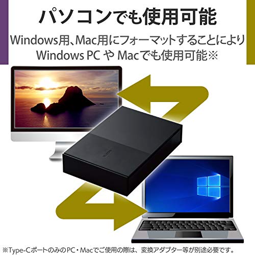 エレコム 外付けハードディスク 4TB USB3.2(Gen1) 4K テレビ録画/パソコン対応 静音ファンレス設計 ELD-GTV040UBK