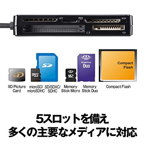 BUFFALO USB2.0 マルチカードリーダー UHS-I対応ケーブル収納モデル ブラック BSCR508U2BK