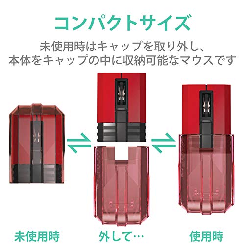 キャップをマウントすることでMサイズと同等の快適なマウス操作性を実現します。使用しないときはマウス本体をキャップの中に収納可能です。