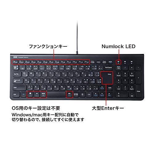 サンワサプライ 有線キーボード USB Type-C接続 (Windows・Mac・Android・iPad OS対応) 薄型スリムタイプ テンキー付き