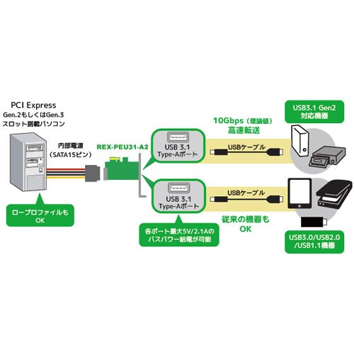 ラトックシステム USB3.1 PCI Expressボード(Type-A×2) REX-PEU31-A2