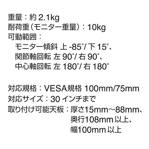 【重量】約2.1kg、【耐荷重(モニター重量)】10kg