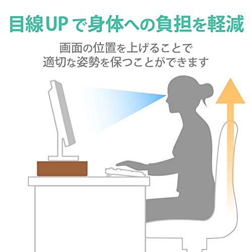 液晶ディスプレイの高さを約8cm上げることで目線をあげることができ、PC作業時の姿勢を改善することができます。