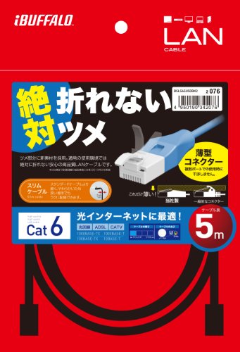 BUFFALO ツメの折れないLANケーブル カテゴリー6 ストレート スリム 5m ブラック BSLS6SU50BK2