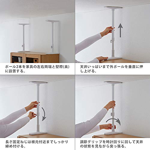 工具不要、取り付け簡単。つっぱって取り付けるので、ねじ・くぎが不要。天井や家具を傷つけず固定できる(2本組)