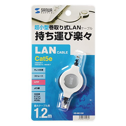 サンワサプライ 自動巻取りLANケーブル ホワイト 1.2m KB-MK15W