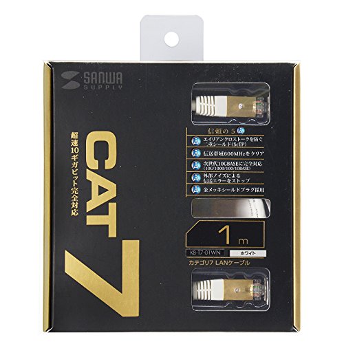 サンワサプライ CAT7LANケーブル (1m) 10Gbps/600MHz RJ45 ホワイト KB-T7-01WN