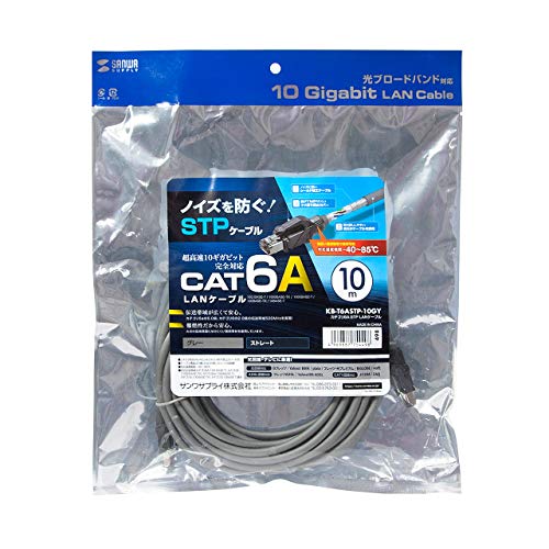 サンワサプライ CAT6A STP LANケーブル(10m) 10Gbps/500MHz RJ45 ツメ折れ防止 グレー KB-T6ASTP-10GY