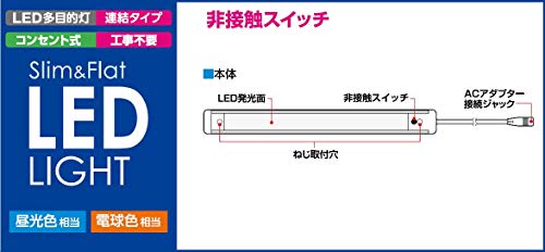 ELPA エルパ LEDバーライト(多目的灯) 60cm 昼光色 手をかざすだけ点灯・消灯 無段階調光可能 角度調節可能 導光