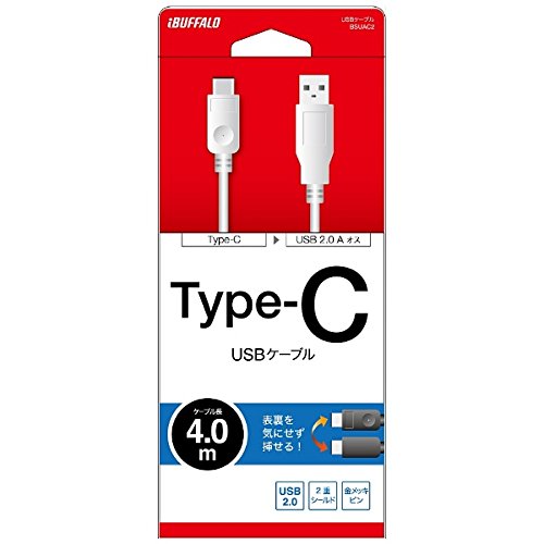 BUFFALO USB2.0ケーブル(AtoC)4.0m ホワイト BSUAC240WH