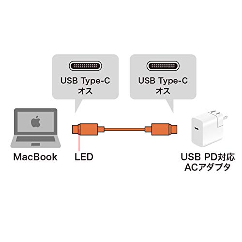 サンワサプライ MacBook用LED付きTypeC充電ケーブル 1.5m USB Power Delivery対応 KU-CCP15MAC