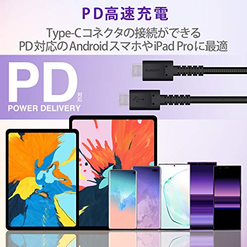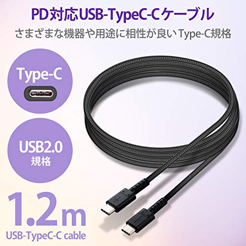エレコム USBケーブル TypeC to TypeC PowerDelivery対応 高耐久 USB2.0認証品 1.2m ブラック MPA-CCS12PNBK