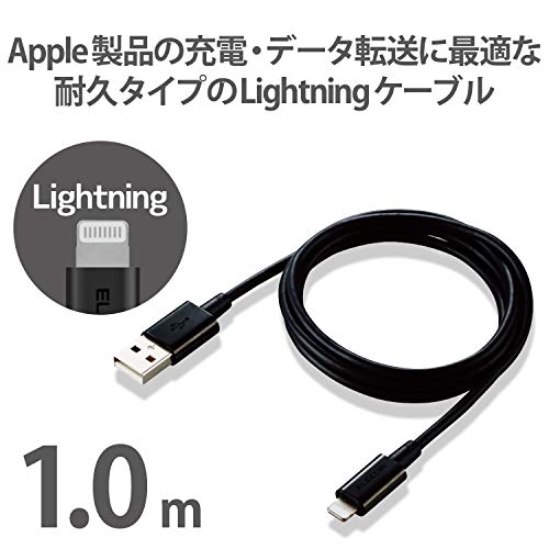 エレコム Lightningケーブル 準高耐久 アルミコネクタ 1.0m ブラック MPA-UALPS10BK