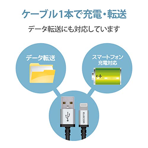 iPhoneやiPod、iPadなどのLightningコネクタ搭載機器とパソコンを接続し、充電・データ転送が可能な高耐久Lightningケーブルです。iPadはパソコンからは充電できません。