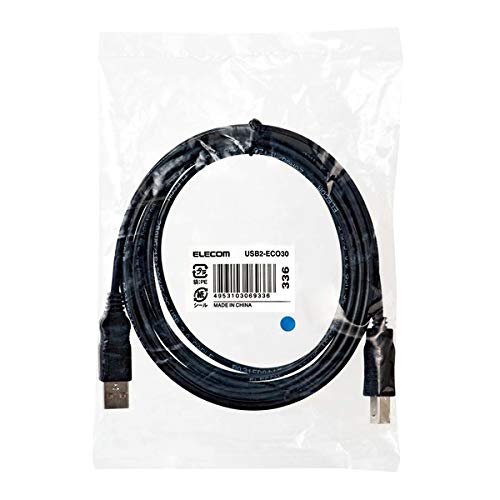 エレコム USBケーブル USB2.0 (USB A オス to USB B オス) RoHS指令準拠 3m ブラック USB2-ECO30