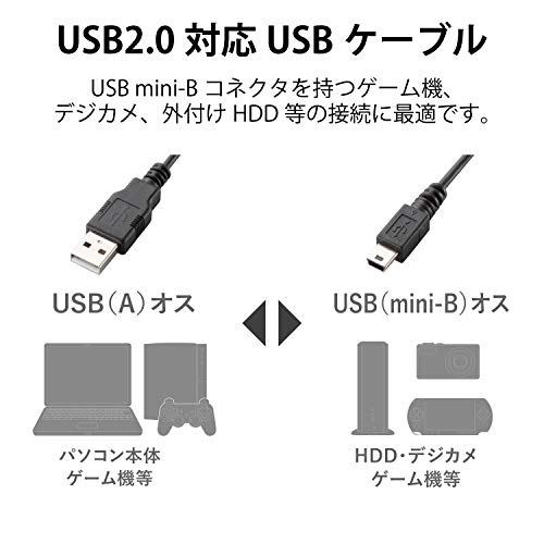 エレコム RoHS指令準拠&環境配慮パッケージ エコUSBケーブル USB2.0 A-miniBタイプ 3m ブラック U2C-JM30BK