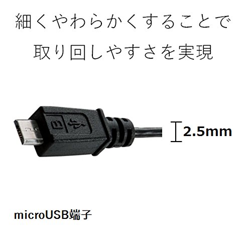 直径2.5mmと、細くてとりまわしの良い極細ケーブルを使用したMicro-USBケーブルです。