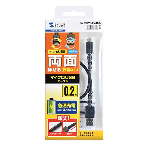 サンワサプライ どちらも両面させるmicroUSBケーブル 0.2m 黒 KU-WRMCB02BK
