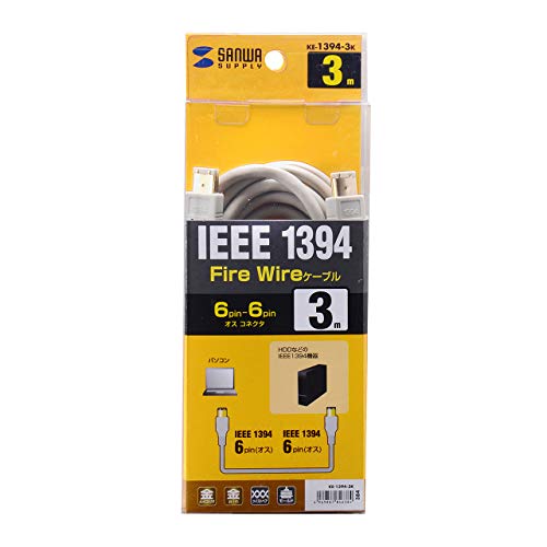 サンワサプライ IEEE1394ケーブル 3m ライトグレー KE-1394-3K