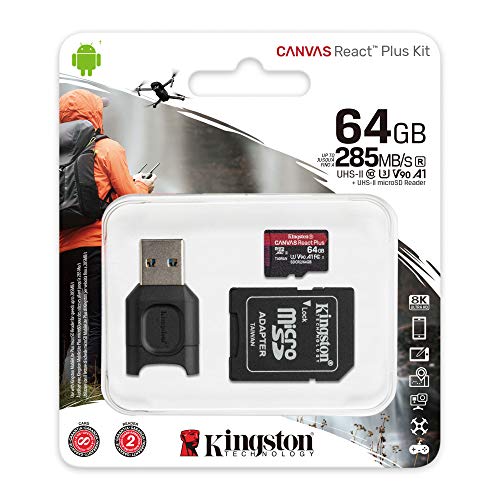 キングストン microSD 64GB 最大285MB/s UHS-II U3 V90 A1 カードリーダー&アダプタ付属 Canvas React Plus MLPMR2/64GB 永久保証