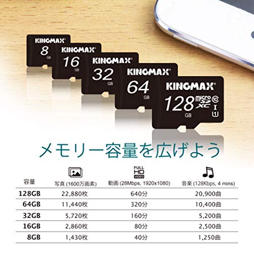 KINGMAX microSDXCカード 128GB Class10 UHS-I 対応 SD変換アダプター付属 スマホ カメラ タブレッドPC パソコン 等 対応 KM
