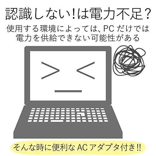消費電力が大きなハードディスクドライブなどのUSB機器も安心して使えるACアダプタが付いた4ポートUSB2.0ハブ。
