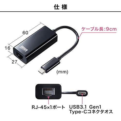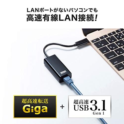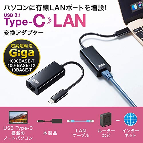 サンワサプライ USB3.1 TypeC-LAN変換アダプタ Windows/Mac/Nintendo SwitchTM対応 ブラック USB-CVLAN2BK