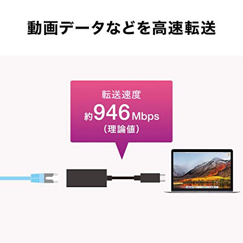 USB3.1 Gen1(USB3.0)対応でギガビット(1000BASE-T)通信に対応しています。有線LANポートを搭載していないパソコンでも高速ネットワーク通信が可能になります。