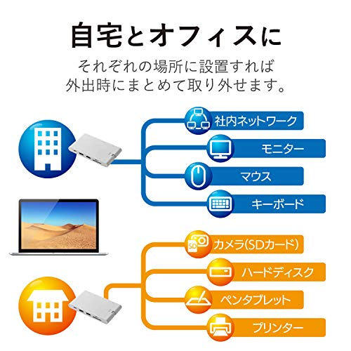 ピタッとケーブル収納できて、持ち歩きに便利。 ノートパソコンへ給電できるPower Deliveryに対応し、USB Type-C搭載パソコンにケーブル1本でさまざまな周辺機器を一括接続できるUSB Type-C接続モバイルドッキングステーション。