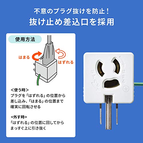 差込口は抜け止め式で不意のプラグ抜けを防止できます。