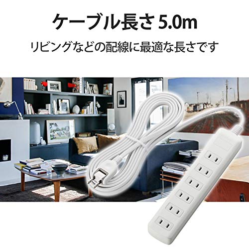 エレコム 電源タップ 雷ガード スイングプラグ 6個口 5m ホワイト T-K1A-2650WH
