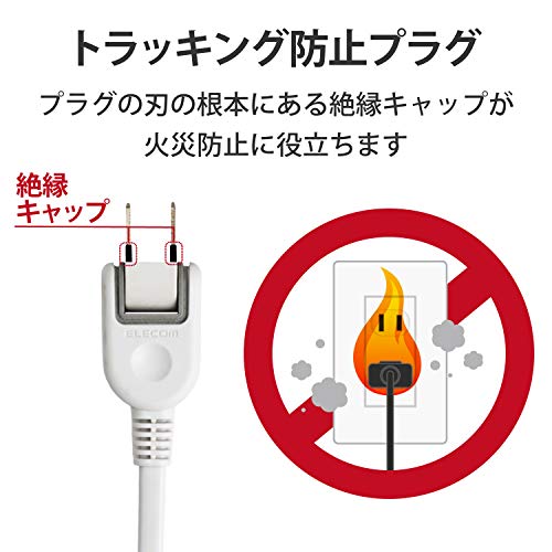 プラグの刃の根本に絶縁キャップが付いており、トラッキング現象による火災の防止に役立ちます。