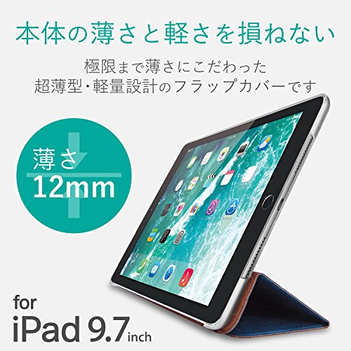エレコム iPad 9.7 (2017/2018) ケース フラップカバー 背面クリア ソフトレザー 2アングル スリープ対応 ブルー TB-A
