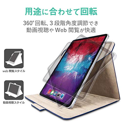 エレコム iPad Pro 11 2020 フラップケース ソフトレザー 360度回転 ネイビー TB-A20PM360NV
