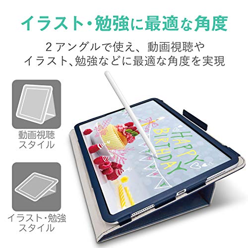 エレコム iPad Pro 11 2020 フラップケース ソフトレザー ドローイングアングル 軽量 ネイビー TB-A20PMDPLCNV