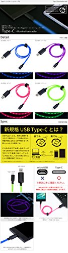 F.S.C. Type-C 変換アダプタ付 イルミネーションケーブル ELライト搭載 最大出力5V/2.4A 最大480Mbps USB2.0規格 パープ