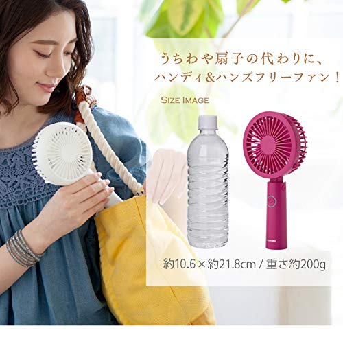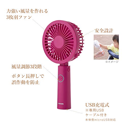 コイズミ 携帯扇風機 ハンディファン ハンズフリー USB 充電式 3段階風量調節 ピンク KPF-0904/P