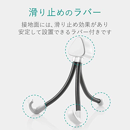 持ち運びやすい約80gの軽量設計。アームを曲げて最適な角度でタブレットやスマートフォンを設置できるフレキシブル三脚スタンド。