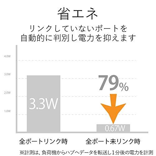 2.1W(全ポートリンク時)と非常に省電力に優れたスイッチングハブ。