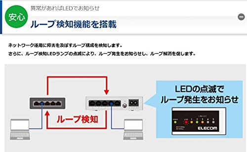 ループ検知機能を搭載しています。LEDランプの点滅によりネットワークループ発生をお知らせし、ネットワーク障害の解消を促します。